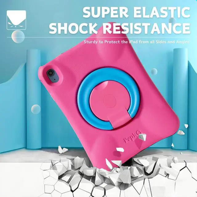 • Design All For Kids/*Outstanding Ergonomic Design*/: Perfectly fit for the Kids little hands. The streamlined ring structure is used as a angle-adjustable stand and a carrying handle. /*Firm Mechanical Design*/: Sturdy to protect the iPad from all sides and angles. Ultra-thick stand & axle can sustain the heavy duty operations. /*Elaborative ID Design*/: All parts of the iPad function well in this case. /*Appealing Colour Combination*/: Most favored by all kids and parents.