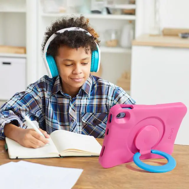 Ergonomic Design*/: Perfectly fit for the Kids little hands. The streamlined ring structure is used as a angle-adjustable stand and a carrying handle.
