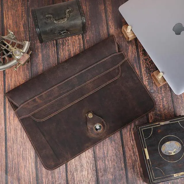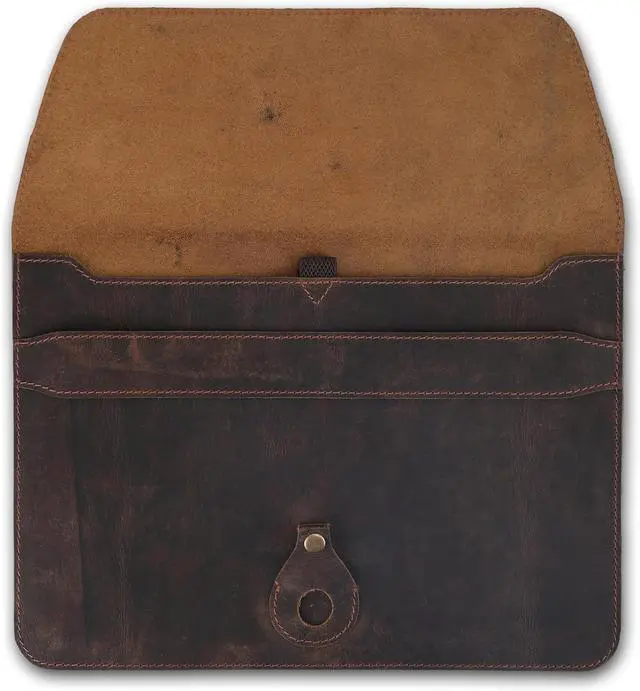 Thoughtfully designed with a built-in pen loop and tag holder, this leather Mac and laptop cover helps keep small essentials organized. The natural brown finish develops a beautiful patina over time, reflecting authentic craftsmanship and individuality. Lightweight yet durable, this leather laptop envelope case provides stylish protection wherever you go. Whether for the office, coffee shop, or commute, its the ideal universal laptop sleeve for anyone who values form and function.