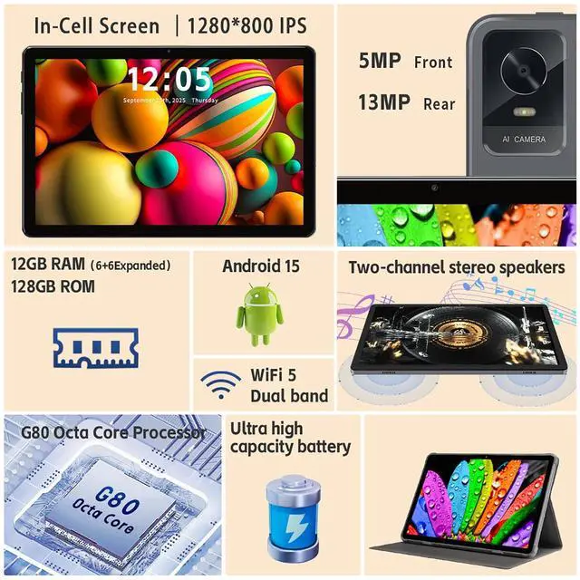 Lightweight and portable, this Android 15 Tablet can be used comfortably anywhere, and it comes with a protective case for added convenience. Perfect choice among Tablets for adults, students, and families.