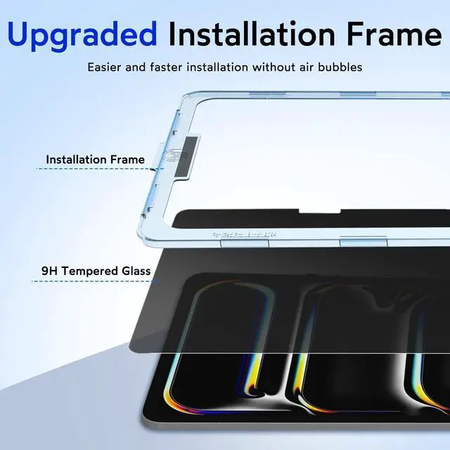 Easy Application: With innovative installation frame, perfect 13 inch iPad pro screen protector applying is a breeze. Installation steps are convenient and quick, it is easy to achieve no bubbles, so that you have no trouble in the installation process