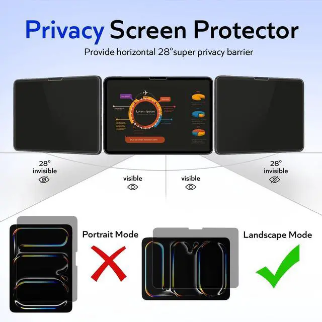 Anti-peep: Using advanced anti-snooping technology of screen protector iPad pro 13 inch can provide horizontal 28 super privacy barrier, prevent nearby people from peeping at your information, and more effectively protect personal privacy and sensitive information. Give you more peace of mind when using your iPad in public. By using the screen protector, you can provide left and right protection from prying eyes ^^