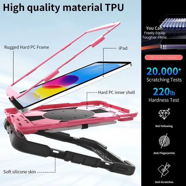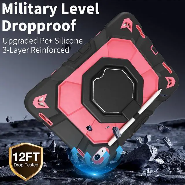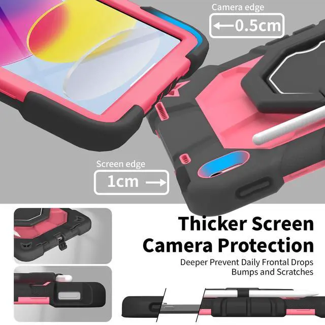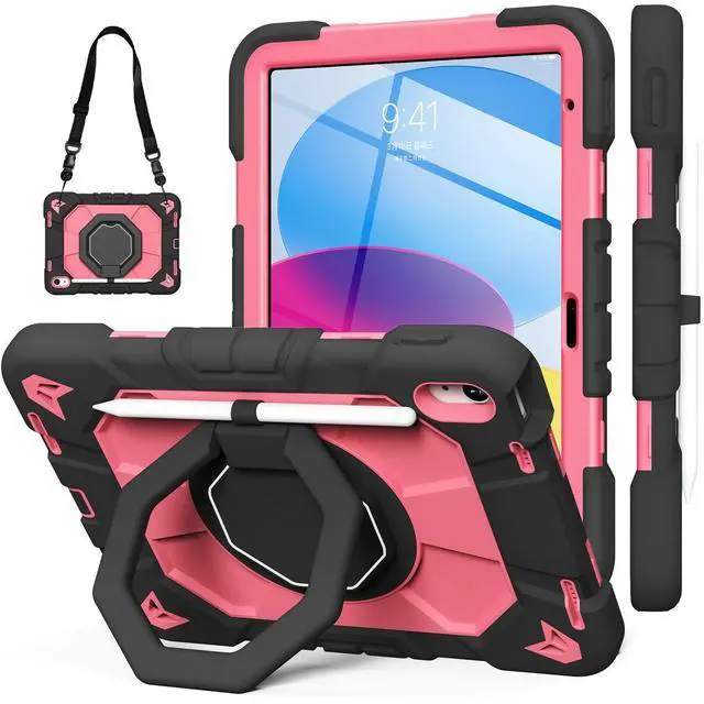 Inch (2022) (Models: A3356/A3355/A3354/A2777/A2757/A2696). Ensure your device model matches for a perfect fit. ^^ Military-Grade Triple-Layer Shockproof ProtectionEngineered with heavy-duty shockproof PC, flexible silicone, and reinforced corners, this rugged cover meets military-grade drop-test standards (MIL-STD-810G). The built-in screen protector and raised edges guard against scratches, drops, and impacts, ensuring ultimate durability for outdoor adventures or kids active lifestyles. ^^ 360 Rotating Stand & Multi-Angle ViewingThe built-in kickstand rotates 360 and folds adjustably, providing stable horizontal or vertical viewing angles between 30-80 degrees. Ideal for typing, watching videos, or drawing in classrooms, offices, or during travel. ^^ Pencil Holder & Detachable Shoulder StrapA dedicated slot securely stores your Apple Pencil, while the adjustable shoulder strap allows hands-free carrying. Great for commuters, students, or artists who need convenience and portability. ^^ Precise Cutouts & Full AccessibilityStrategically designed openings provide effortless access to all ports, buttons, and cameras without removing the case. Ideal for daily use, gaming, or creative work. ^^ Gift-Ready Packaging & Reliable Customer SupportThis stylishly packaged protective cover makes a practical gift for birthdays or holidays.
