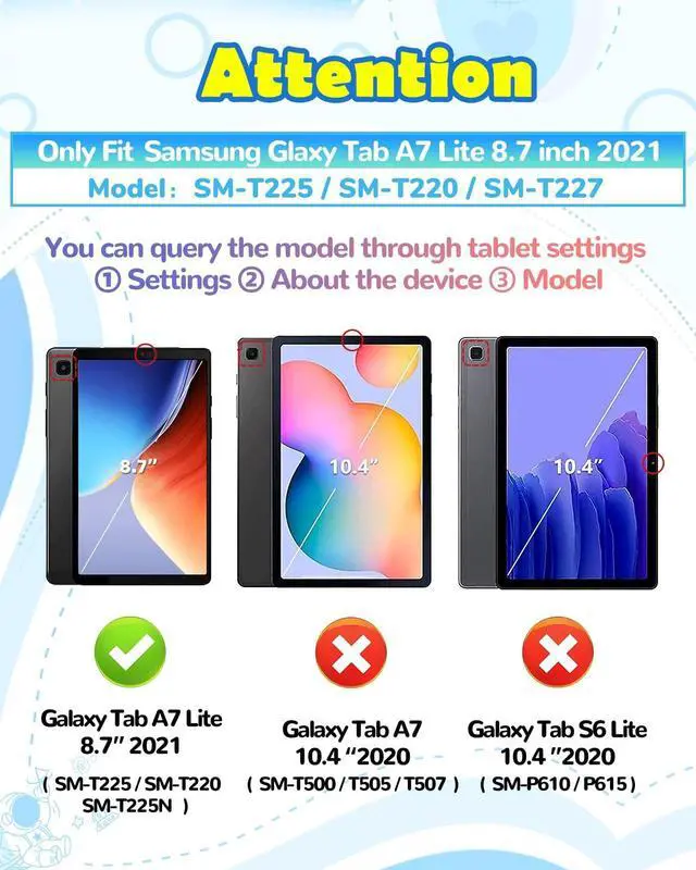 Please note: Not Compatible with any other device. You will receive with a Samsung A7 Lite case, a shoulder harness. ^^ Cute DesignThis for Samsung Galaxy A7 Lite case has cartoon and cute 3D astronauts blue design which makes your table case looks distinctive. This for Samsung Tablet A7 Lite case is a best choice for choice girls, boys. ^^ Rotating KickstandThe for Tab A7 Lite Case has 360rotating and 180folding handle kickstand that is rugged and stands firmly. You can get rid of your hands while watching movies or playing games. ^^ Shoulder StrapIf you purchase this for A7 Lite Table case, you will receive a complimentary cute shoulder strap, which is detachable and adjustable, making it easy for you to carry case for Galaxy Tab A7 Lite when you go out. ^^ Material QualityThis for Galaxy Tablet A7 Lite cover is made of high-quality and durable soft silicone, which has a good touch and can also protect your flat shell from falling, shock, and dust.