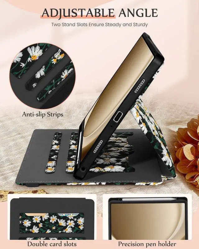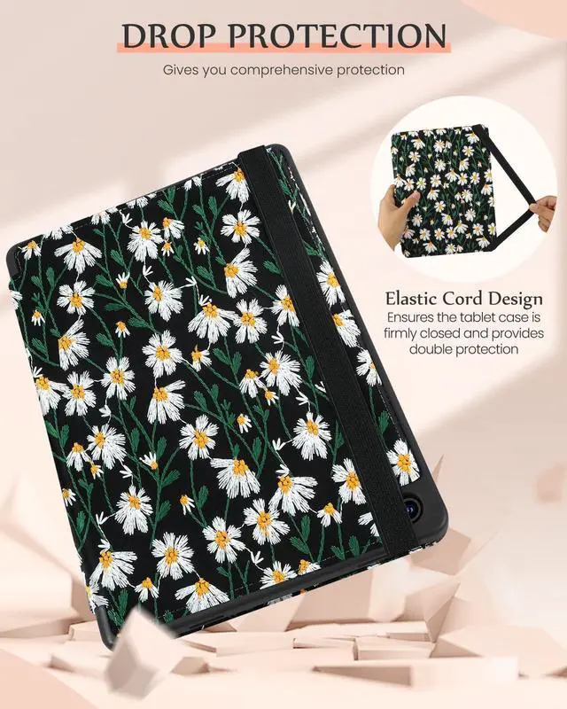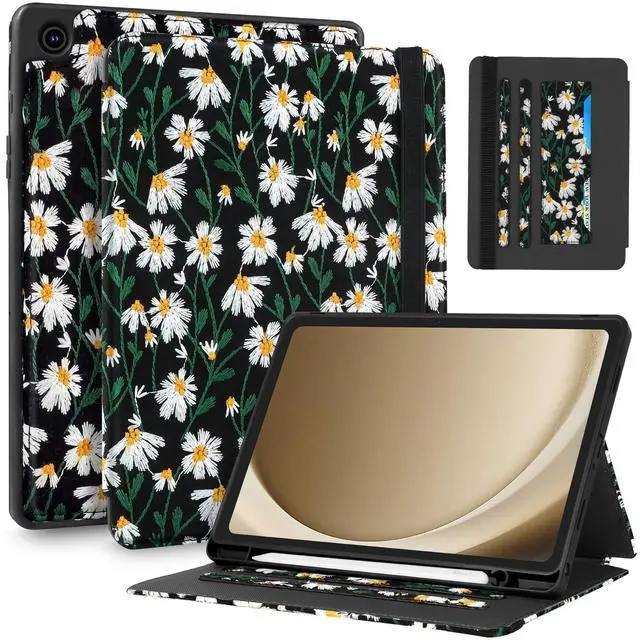 Adjustable Angles & Pencil Holder: This embroidered case for for Galaxy tab a9 plus makes your tab a9 plus can stand at 2 different positions on the table. Provide you comfortable viewing and typing experiences. This for tab a9 plus case has built-in pencil holder, so you can place and remove your pencil easily ^^