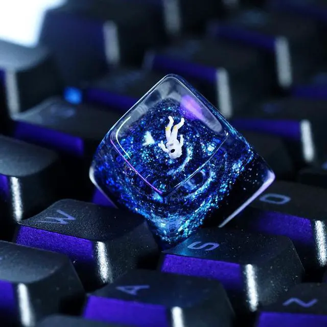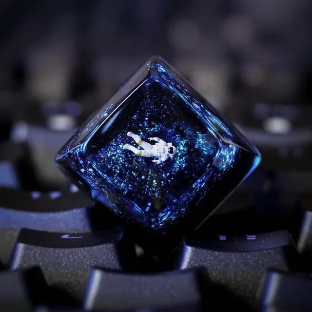 Cool Blue Galaxy Astronaut Artisan Keycap R1 SA Profile Custom Astronauts Keycaps 1U ESC Handmade Resin Gaming Space Explorer Key Cap Cherry MX Switch Compatible Mechanical Keyboard Space Lover Gift
