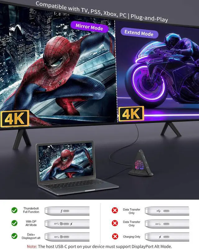 Note: The host USB-C port on your device must support DisplayPort Alt Mode. ^^ Powerful 100W