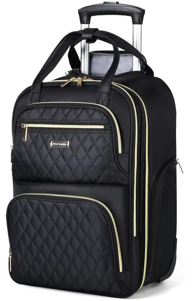 Carry: This wheeled backpack designs easy to use, the hideaway shoulder strap allows for easy carrying, and the aluminum telescopic handle and 2 silent rubber wheels provide smooth and quiet rolling on any surface ^^ Stylish and