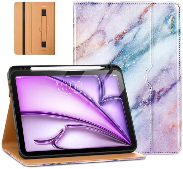 Number: A2588/A2589/A2591/A2316/A2324/A2325/A2072). Not compatible with any other iPad model ^^ Unique Design - Built-in hand strap for one handed operation of your iPad Air 11 inch/5th/4th, multiple horizontal bracket angles for comfortable watching movie or typing, free your hands ^^ Magnetic Smart Cover - Auto Wakes/Sleep, automatically wakes or puts your tablet to sleep when the lid is opened and closed external elastic band enhances magnetic closure ^^ Multi Function - Features front document card pocket to keep notes, cash, cards. Built-in Pencil holder support your Apple Pencil (USB-C) or Apple Pencil 2nd gen charging.