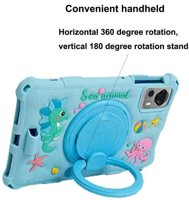 PracticalIt has anti-fingerprint and anti-drop functions, effectively buffering the impact of the tablet falling and the raised edges perfectly protect the camera. Fashionable color contrasts color design, smooth edges, Precise cutouts allow full access to all ports, buttons, and features. 360 degrees rotate stand allows hands-free viewing. 360 degrees rotate stand convenient to carry tablet