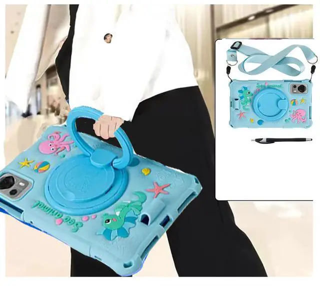 High Quality MaterialThis Tablet Case is made of hard PC and soft, Non-Toxic and Tasteless Silicone materials. Composed of a silicone protective case, a 360 degrees rotate stand and a shoulder strap, and a pen.