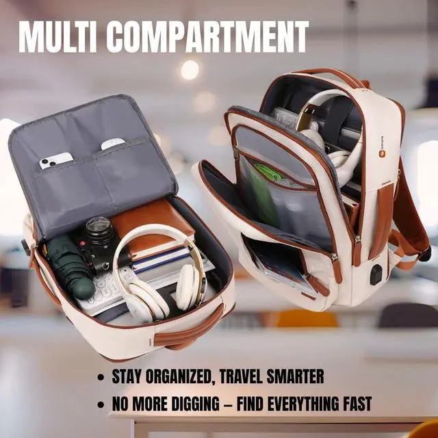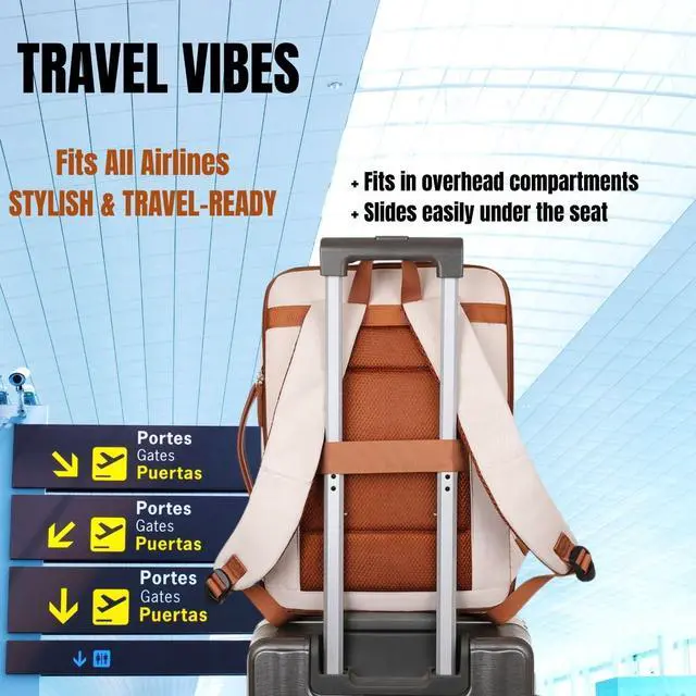 multiple carrying options: backpack, side handle, or over-the-shoulder. Comfortable for all-day wear at airports, offices, or campus. ^^ Sleek & Multi-Purpose Minimalist Style Unisex cream design fits business, school, or leisure settings. Expandable compartments and organized pockets make it perfect for everyday commuting, weekend getaways, or frequent travel, while keeping a polished and stylish look.