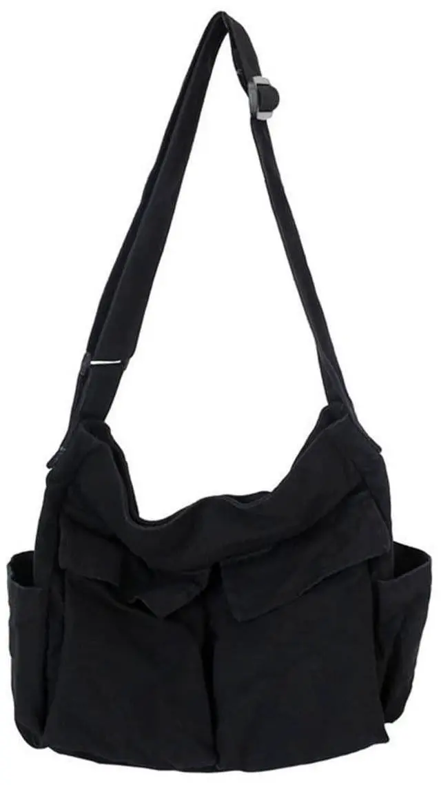 ^^ LARGE CAPACITY Size: 13.7 x 5.9 x 15.7 in (LxWxH). Inside there is one main compartment (spacious enough to hold your laptop, mobile phone, umbrella, books, etc) and one hidden zipper inner pocket. It has a top zipper to keep things secure. Outside there are two front pockets (for keys, tissue, etc) ^^ ADJUSTABLE STRAP This casual messenger bag can be used as a comfortable crossbody bag as well. You can pull the strap adjuster on top and pulled it up and made it longer. It doesnt come fully extended and may seem to short, but it can extend to make long. In addition, the top zipper closure makes your goods safer. ^^ SUITABLE OCCASIONSThe hobo tote bag is very versatile and sturdy. Sturdy material, great size for work, school, shopping or travel. It is also an ideal present for your friends, families, etc. ^^ WASHING NOTICECleaning of canvas bags is not recommended. The washing shrinkage rate is about 5% -10%. If it is very dirty, it is recommended to wash it in cold water by hand.