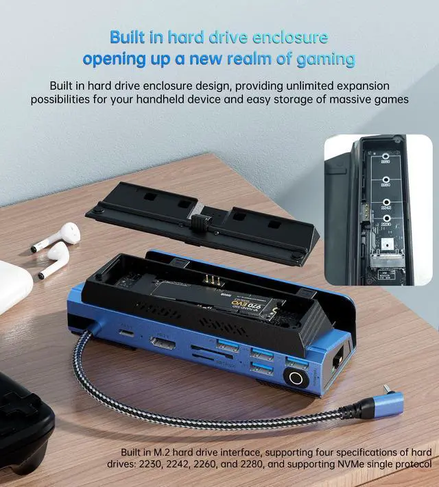 2 NVMe Expansion Slot: With the M. 2 NVMe expansion slot, you can easily install M. 2 NVMe solid-state drives, expanding the storage space for devices like the Steam Deck OLED and meeting users' needs to store more games, files and other data. It enables the solid-state drives to achieve the optimal read and write speeds and enhances the overall storage and data processing capabilities of the devices.