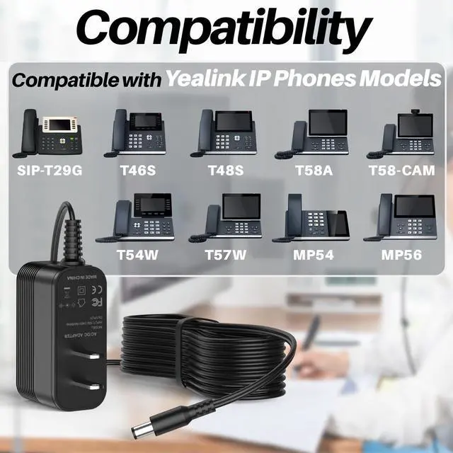 Compatibility: 5V power adapter compatibles with Yealink Phone T54W, T46U, MP54, MP56, T57W, T46S, T48U, T53W, SIP-T38G, SIP-T46G, SIP-T48G, SIP-T29G, SIP-T32G, SIP-T5XX, T48S, T58A, T58-CAM, PS5V2000US and CP860 for IP phones models ^^