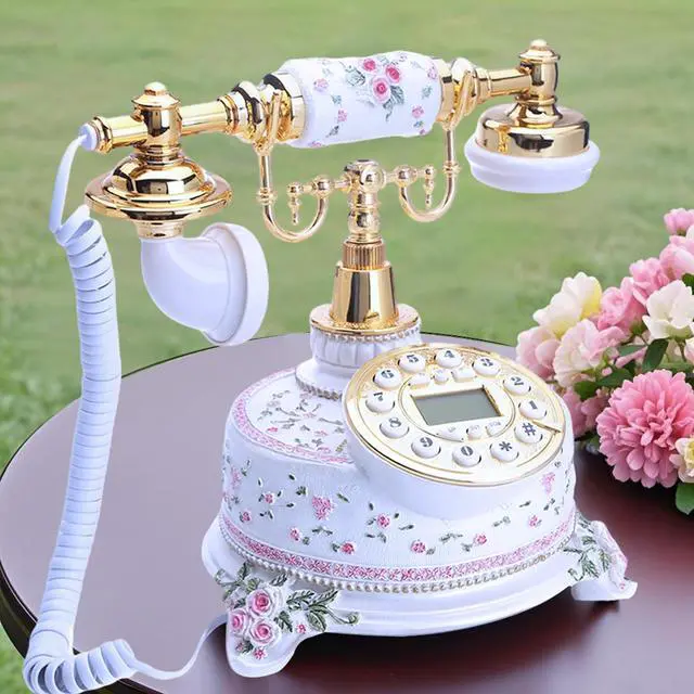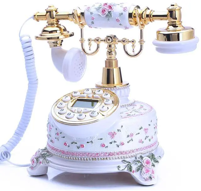 This is a very beautiful antique style telephone which could be used for both office and home decor; also it could be a very high quality but fair price gift for friends. Made of non-toxic resin material; the surface of the phone is smooth and exquisite; the design is old fashioned. The metal part is polished just like a mirror, and the golden part protect it from rustic for years.