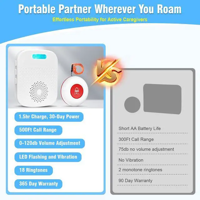 GET HELP QUICKLY & EFFICIENTLY: When assistance is needed, a simple press of the caregiver call alert button sends a signal directly to the caregivers pager receiver. This emergency pager system is suitable for private households, as well as hospitals, nursing homes, and many other places. With a long range of up to 300ft/90m (open area), the caregiver has the option to be further away and still get alerted ^^