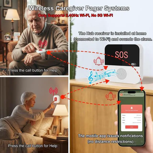 Button for Elderly: No subscription required. Plug in the hub, connect to 2.4G Wi-Fi, and its ready. Seniors activate help with Call buttonperfect for those with arthritis, limited mobility, or memory challenges. This wireless call button for elderly is simple, intuitive, and ideal for home safety monitoring. ^^ Waterproof Call Button and Watch Button with Custom Ringtones Designed for