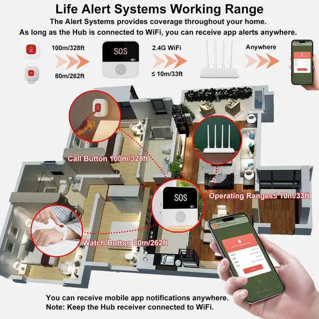 Home: Call buttons and hub to build a full coverage caregiver alert system for homes, clinics, or nursing facilities. Each button can be individually named and monitored through the APP. Backed by 24/7 customer support, this medical alert system keeps your family protected with reliable, easy-to-use safety technology.