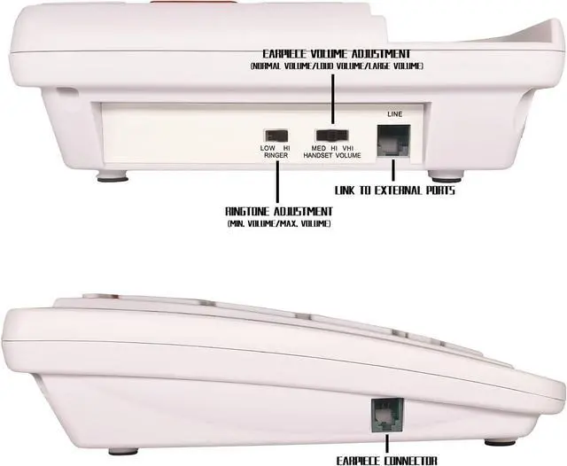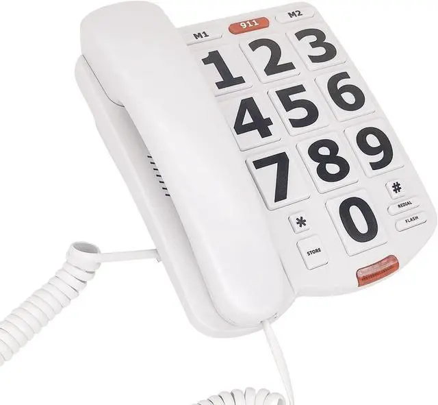 The last number redial function is also included for added convenience. Constructed with durable ABS materials, this corded phone is long-lasting and easy to use. Please note that when storing telephone numbers, the number keys do not play a signal tone, this is a normal feature of the phone. The phone measures 8.86 x 8.86 x 2.68 inches and is available in white. This phone is a plug-and-play device, no batteries required.