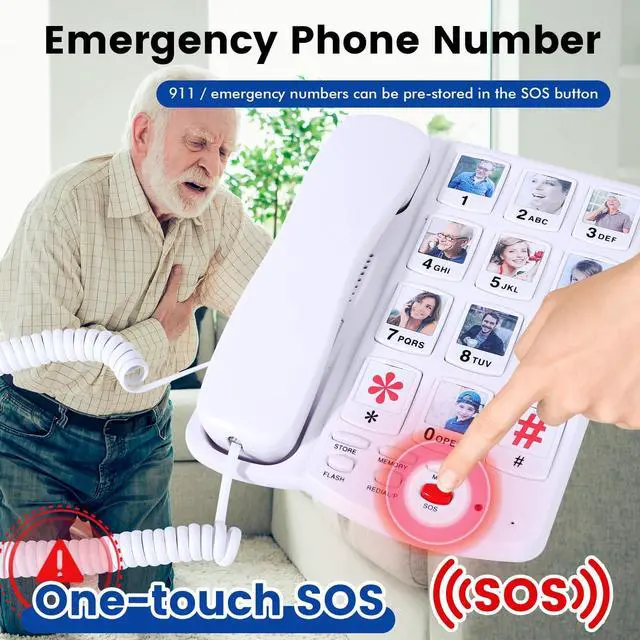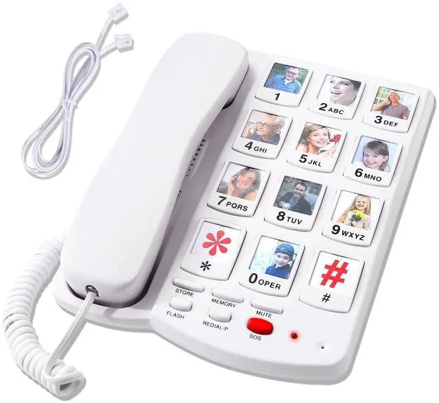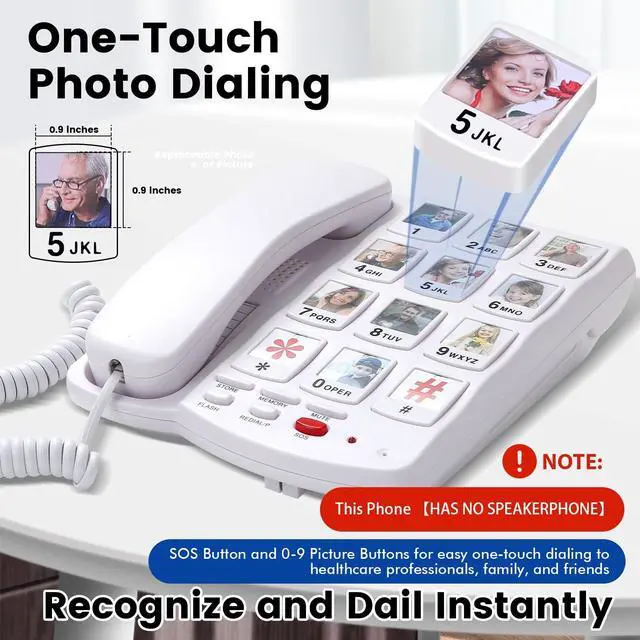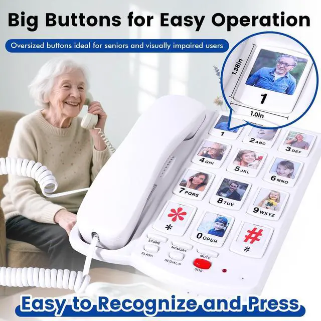 Large Button Phones for Seniors 1.3 x 1.0 Inch Keys & 0.9 x 0.9 Inch Photo Dials - The Ultimate Oversized Button Corded Landline for Visually Impaired, Low Vision, Arthritis, and Tremors - Designed for Easy Pressing with Limited Dexterity to Prevent Wrong Numbers - A Simple, Reliable Home Telephone and a Gift for Elderly Parents, Mom, and Dad ^^ 10 Photo Speed Dial Keys for