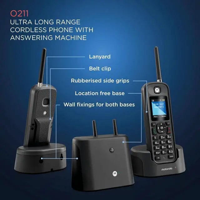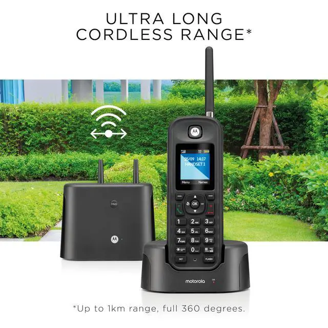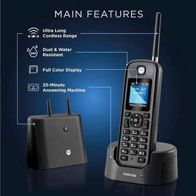 ^^ WATER RESISTANT: This cordless phone with answering machine is 1P67 certified with international protection rating for dust and water resistance. It is submersible up to 1 meter for up to 30 minutes. Our land line phone is great for carrying outside.