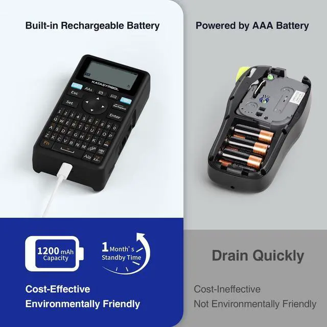 Rechargeable Battery: Features with 1200 mAh battery provides up to 1 month of use per charge, offering great cost efficiency; lightweight ( 0.5 lb) and compact ( 5.7" x 2.9" x 1.3" ), ideal for on-the-go labeling ^^
