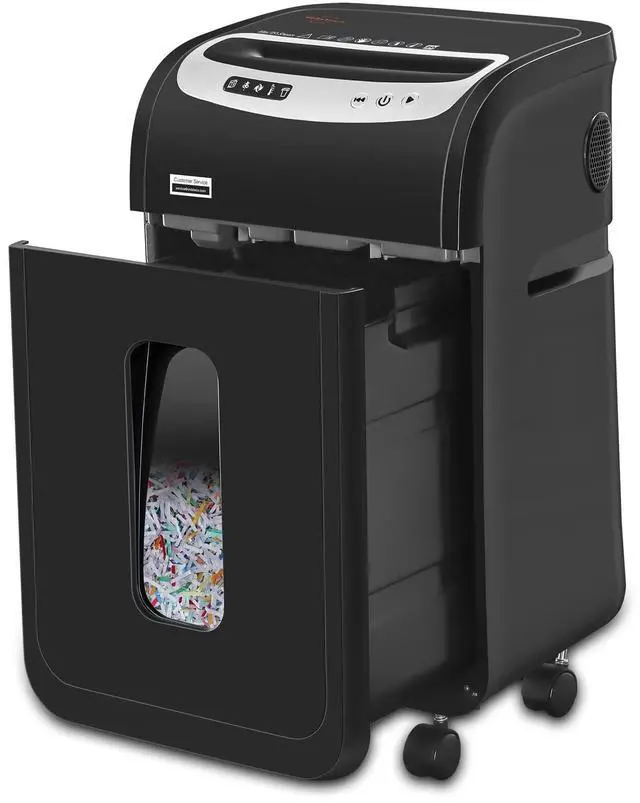 Extra Larger Bin: The document shredder comes with 7.9 gallons pull out bin and 2 SHREDDER BAGS that offer less frequent and less dusty emptying. 4 removable casters help to park and move the shredder easily. Paper shredder for office ^^