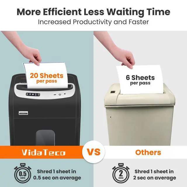 Security level: This office paper shredder can take max 20-sheet of 20-pound bond paper down to 0.16 inches by 1.5 inches (4 by 38 mm) at a time, no need to remove staples or clips. Also shreds credit card, CD and junk mail (one at a time) ^^