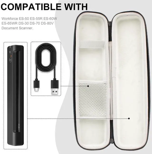 Perfect Fit: Hard Carrying Case Compatible with Workforce ES-50 / ES-55R / ES-60W / ES-65WR / DS-30 / DS-70 / DS-80W Document Scanner.