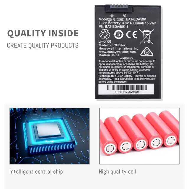 Compatible Models: For Honeywell ScanPal EDA50K EDA51K EDA51K-0 EDA50KP EDA50KP-0 EDA50K-0 EDA51K-1 EDA50KP-3 ^^ Upgraded Li-ion rechargeable, battery is manufactured with premium grade A++ battery cells, high quality Aluminum Casing and high quality Smart IC chip. It is tested under strict QC standards step ^^