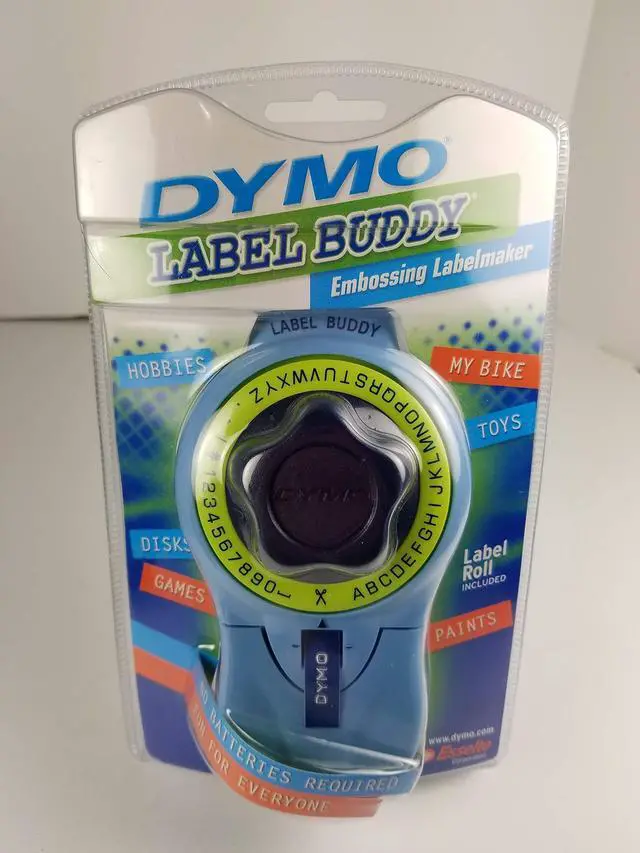 The Label Buddy is the ideal entry-level way to label files, CDs, toys, and more. Its simple turn-and-click embossing system makes it a trusted companion for people who want to make their words and numbers stick. No batteries are needed. The Label Buddy uses 3/8 in. wide embossing label tape. One pre-loaded, 12 ft. long roll is included.