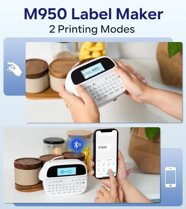 M950 Label Maker Machine with 3M21 Tape, Rechargeable Portable Labeler with Backlit LCD, Handheld Label Maker with Keyboard, Multiple Font Frame Icon for Home School Office Organization