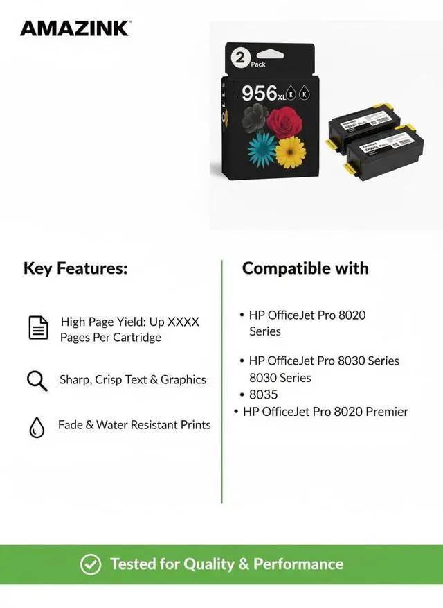 High-Yield Performance: Each Amazink 956XL black ink cartridge delivers an impressive page yield, allowing you to print significantly more documents compared to standard cartridges, ensuring fewer interruptions and better value for your printing needs.