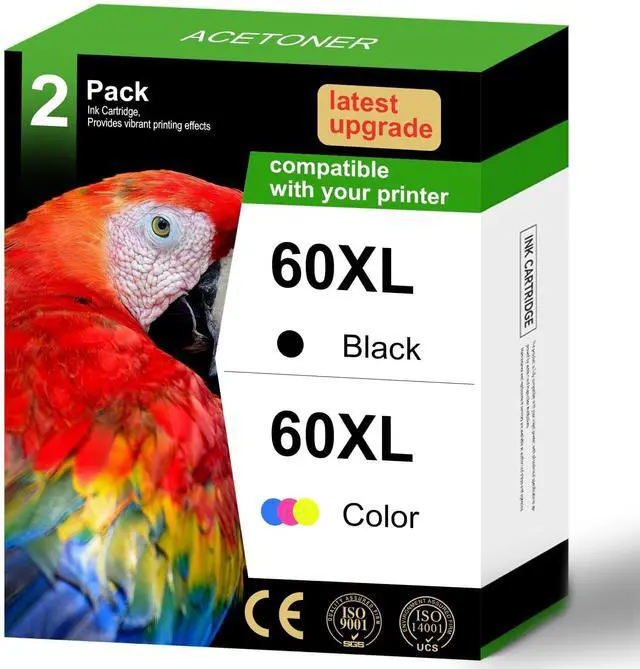 Get: 2 pack for 60xl tri-color and black ink cartridge. (1 x 60xl black ink cartridge, 1 x 60xl color ink cartridge) ^^ Ink