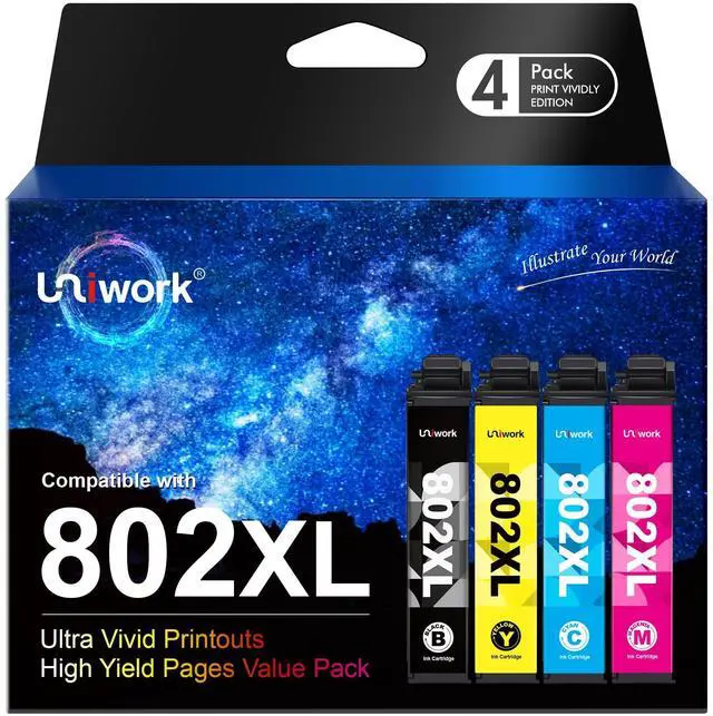 Ink Cartridges Combo Pack: 1 Black 802 Ink Cartridge, 1 Cyan 802XL 802 Ink Cartridge, 1 Magenta 802XL 802 Ink Cartridge, 1 Yellow 802XL 802 Ink Cartridge ^^ Our Remanufactured 802XL 802 XL Ink Cartridge Combo Pack Replacement For Epson 802XL 802 Ink Cartridges Produce Brilliant Colors And Sharp Black Prints