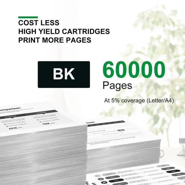 Page yield: 60000 pages per 56F0Z00 drum unit (A4 Letter, at 5% Coverage) ^^ Use PRINPUSE compatible cartridges to cost less but obtain equivalent printing performance to using original brand cartridges ^^ PRINPUSE is committed to ambient air quality. Our products are designed and tested the printing systems to meet eco-label emissions guidelines
