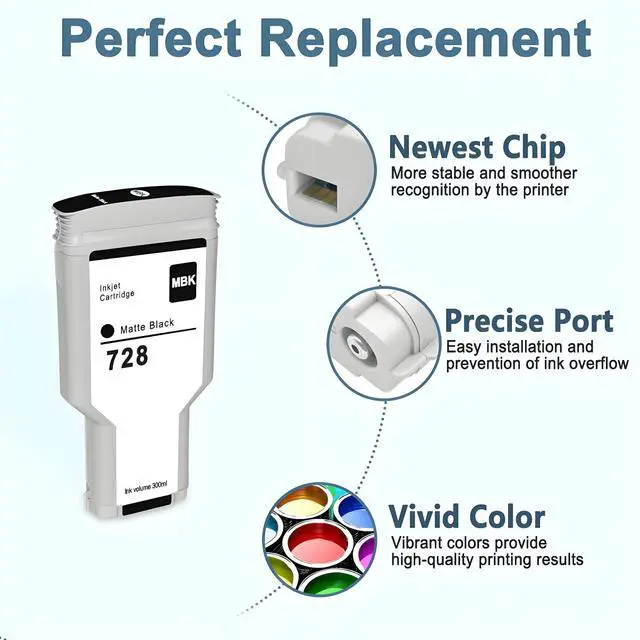 Superior Quality: This high-yield HPQ-728 ink cartridge uses the latest chip technology and high-quality pigment ink, with an anti clogging nozzle design and easy installation. Provide clear text and graphics, comparable to the original ^^