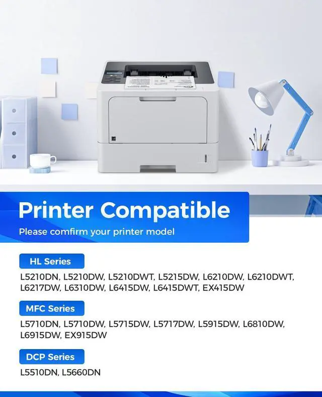 ^^ Compatible Printers: Compatible with Brother HL-L5210DN, HL-L5210DW, HL-L5210DWT, HL-L5215DW, HL-L6210DW, HL-L6210DWT, HL-L6217DW, HL-L6310DW, HL-L6415DW, HL-L6415DWT, HL-EX415DW, MFC-L5710DN, MFC-L5710DW, MFC-L5715DW, MFC-L5717DW, MFC-L5915DW, MFC-L6810DW, MFC-L6915DW, MFC-EX915DW, DCP-L5510DN, DCP-L5660DN Series Printer.
