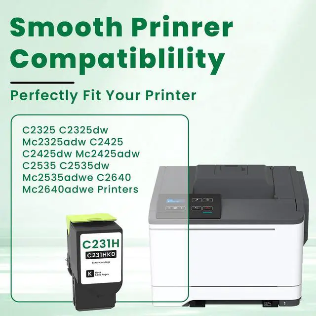 • Compatible Printers: C231H C231HK0 Toner Cartridge compatible for C2325 C2325dw MC2325adw C2425 C2425dw MC2425adw C2535 C2535dw MC2535adwe C2640 MC2640adwe Printer