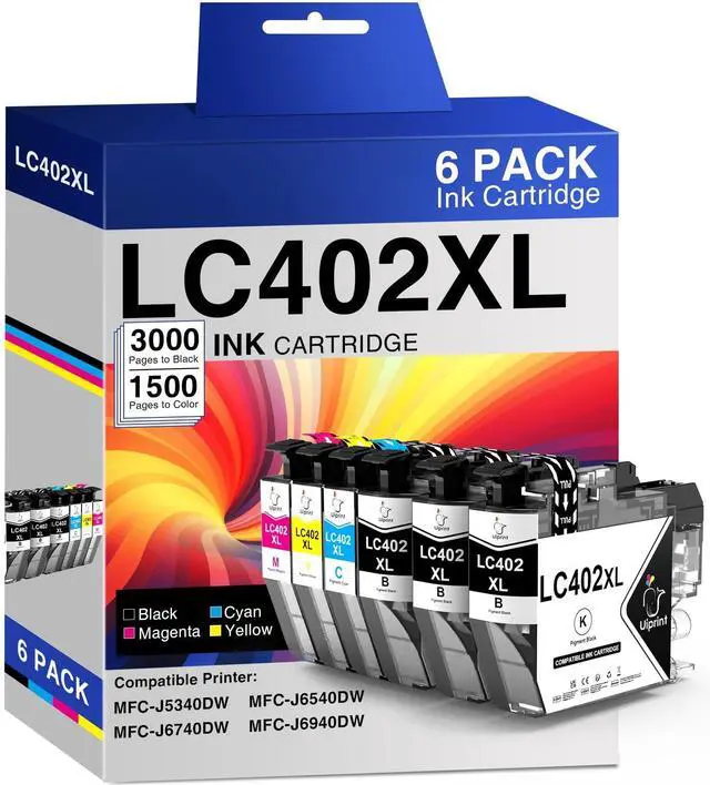 Package Included: Uiprint 6-Pack High-Yield LC402XL Ink Cartridges (3 Black, 1 Cyan, 1 Magenta, 1 Yellow) for Exceptional Inkjet Print Quality ^^