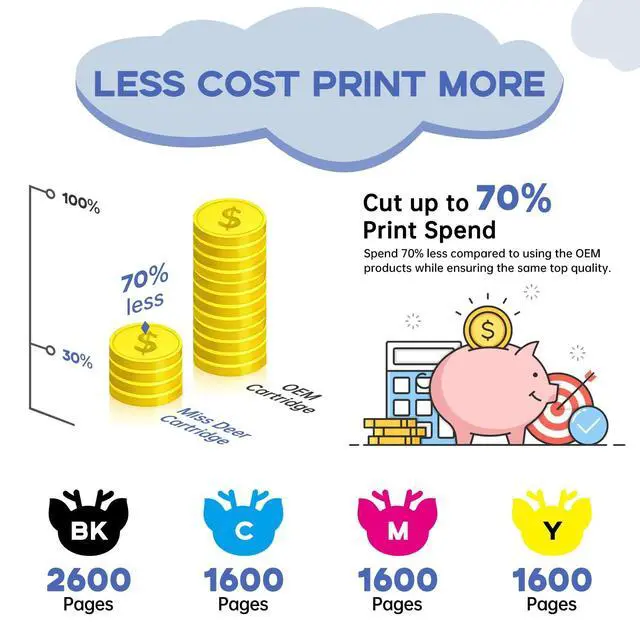 Advantages: Saving you time, money, and ensuring your satisfaction ^^ Miss Deer's dual ink technology is an innovative combination of the brightest dye-based color inks and permanent and water-resistant pigment-based black to bring out every detail on plain paper, enabling full and accurate communication. Please confirm your printer and ink cartridges model before placing orders