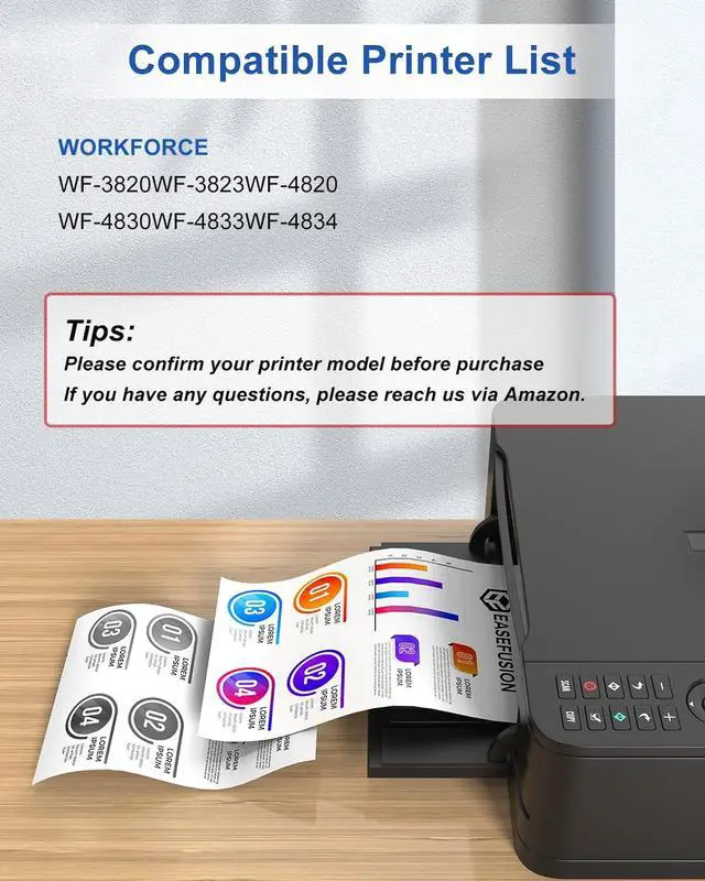 Compatible Printers: replacement for epson 822xl ink cartridges Works with WorkForce Pro WF-3820, WF-3823, WF-4820, WF-4830, WF-4833, WF-4834.