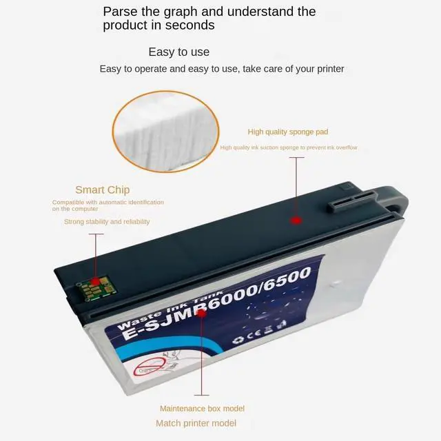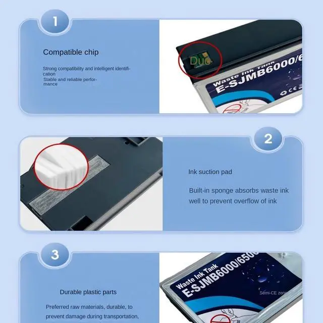 Installation Instructions: The SJMB6000/6500 Ink Maintenance Box stores ink that gets flushed from the system during print head cleaning. The maintenance box needs to be replaced when it is full. SJMB6000/6500 Waste Ink Tank is Suitable for