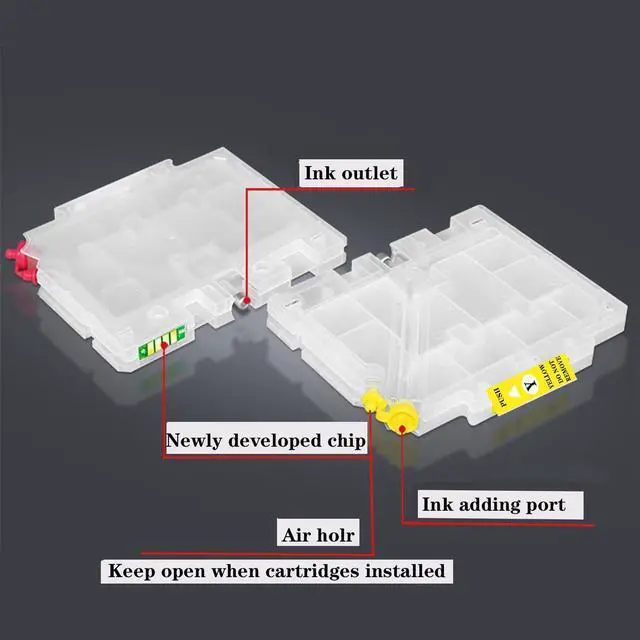 Suggestion: Empty ink cartridges can only contain 90% ink, so as to prevent the ink from overflowing and polluting the printer during use.. If your printer is brand new and you have not used the original ink cartridge, please first install the original ink cartridge and initialize the printer so that your new printer can recognize and use our ink cartridge. If you have any questions about this product, please feel free to contact us.
