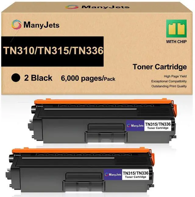 PACKAGE CONTENTS: ManyJets compatible TN315 BLACK toner cartridge replacement for Brother TN336 TN-336 TN331 TN315 (2pack, NON-OEM) ^^