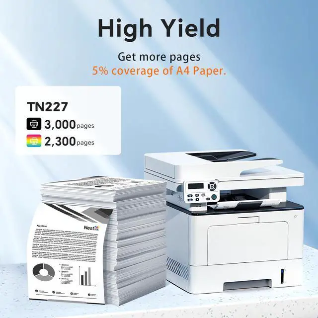 High Page Yield: Up to 3000 Pages per tn227BK tn227 Black Cartridge, Up to 2300 pages per Color tn227 C/M/Y Cartridge. (Letter/A4, at 5% Coverage) ^^