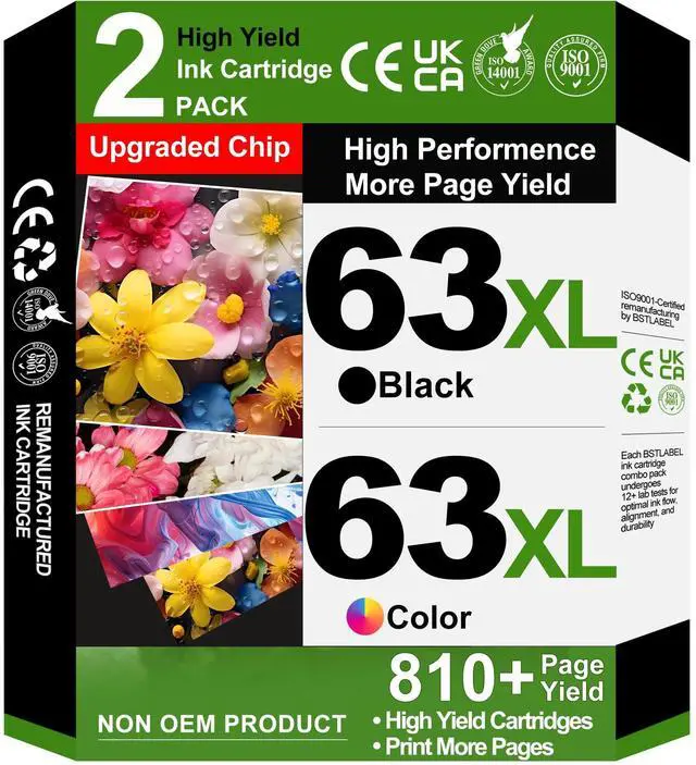 Highly Premium: BSTLABEL 63XL for hp 63 Ink cartridge combo pack are equipped with the latest upgrade intelligent chips. Remanufactured ink cartridge replacement for hp 63XL has been awarded ISO9001 certification, and we have independent laboratories periodically verify product quality to ensure a smooth user experience.