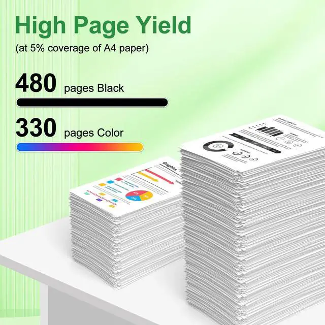 ^^ Higher Page Yield: Up to 480 pages for hp ink 63 black, 330 pages for hp 63 ink tri-color. (at 5% coverage of A4 paper) ^^