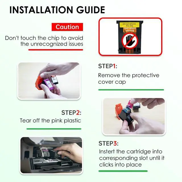 Quality Control: Our remanufactured for 64xl ink cartridges black/color combo pack replacement for hp ink 64xl 64 ink cartridges undergoes repeated printing, aim to bring high-performance and better printing standard to every customer ^^ To avoid the in-compatible issues when printing, please don't touch the chip